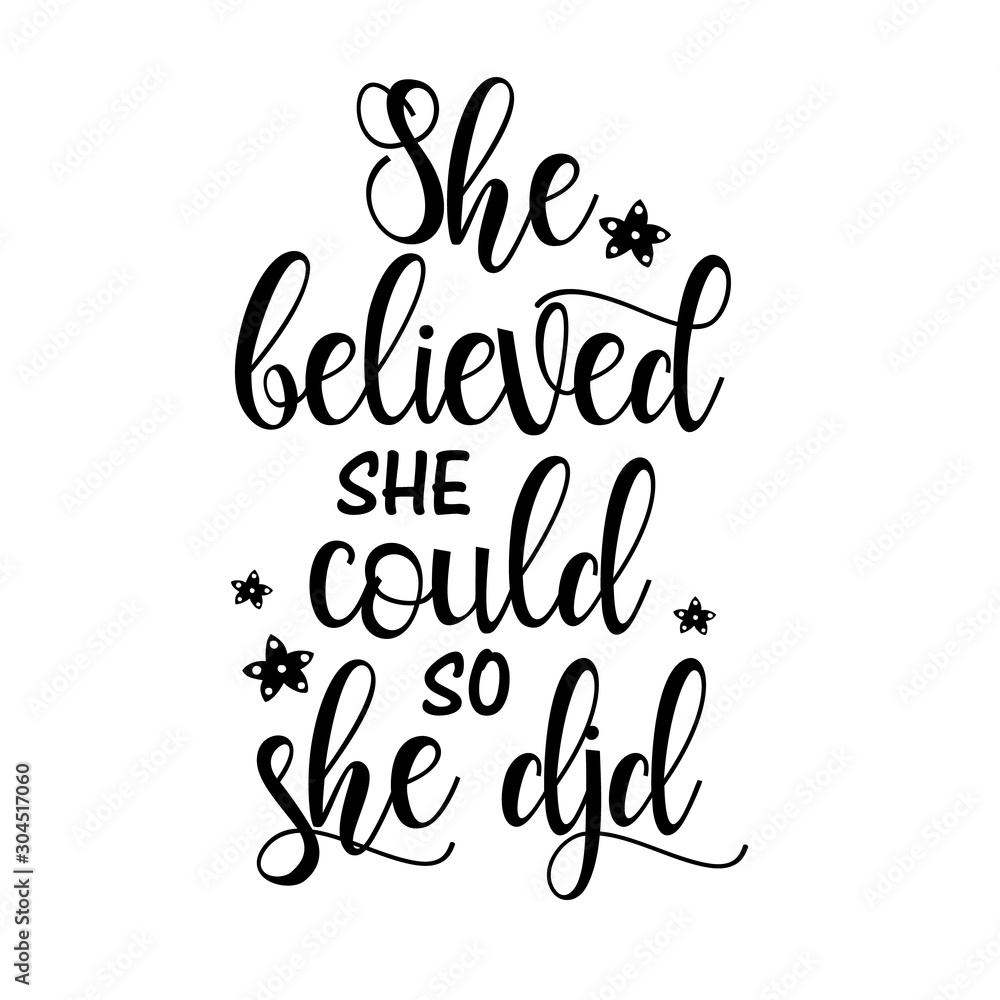 She Believed She Could So She Did vector file saying. Isolated on